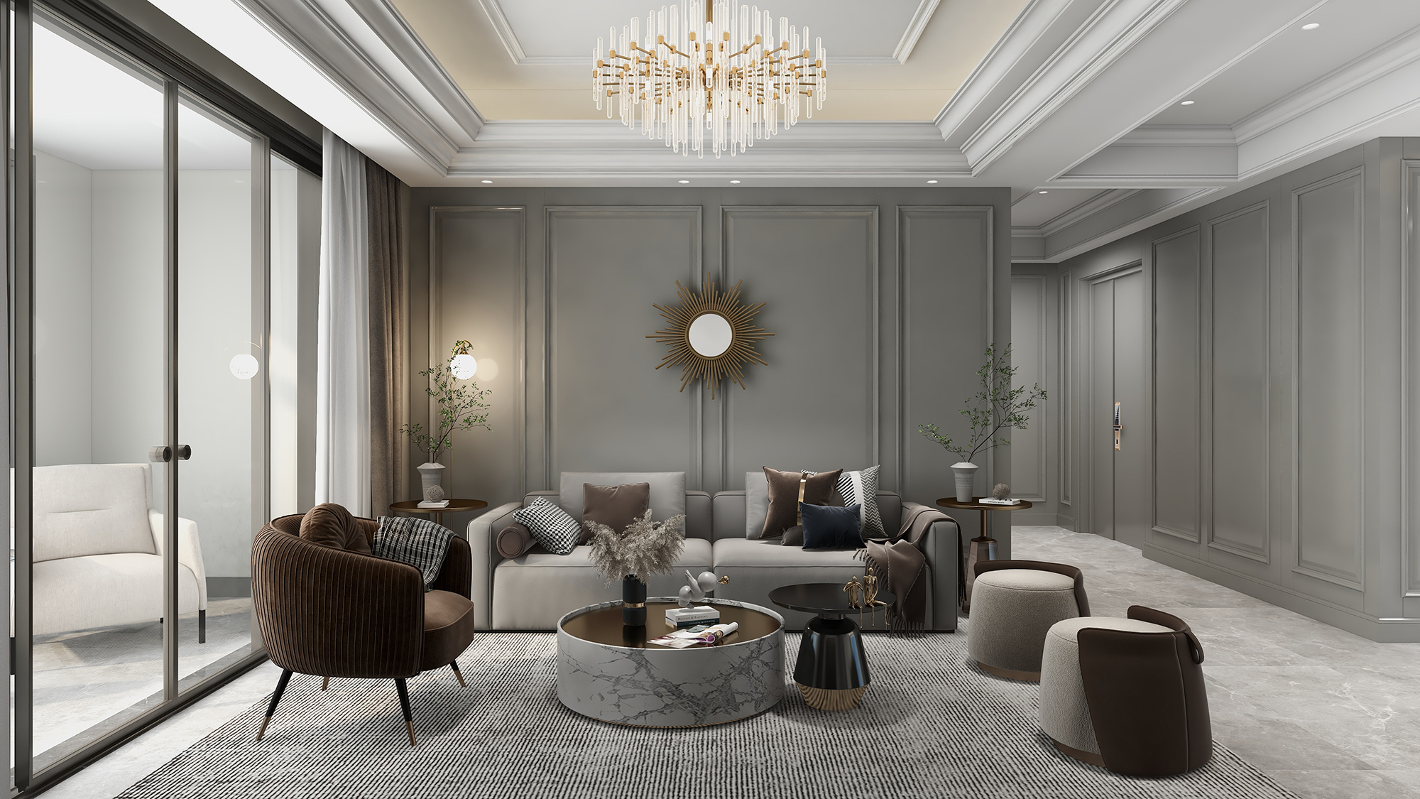 让墙面的白色作为基本底色,拼接独特风格的齐柏林灰或莫兰迪色,撞出高级感。